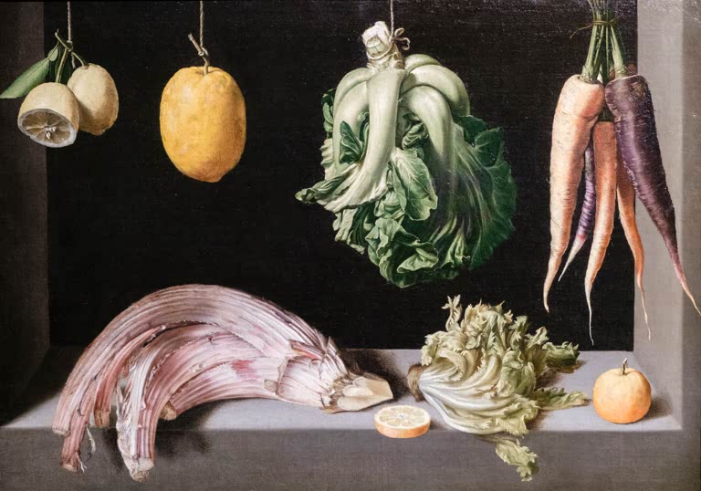 Fray Juan Sánchez Cotán (1560-1627) vécut à Tolède (Espagne) jusqu’à l’âge de 43 ans. Il y est un peintre estimé. Il y fréquente le Greco (1541-1614) dont il possède deux tableaux et auquel il a prêté une importante somme d’argent. Ses natures mortes constituent l’un des sommets de la peinture espagnole. On y retrouve toute son âme éprise d’ascèse. Il y transpose le fruit de sa contemplation de la transcendance des choses simples (1). Familier des Franciscains, Sánchez Cotán se complaît de plus en plus, en dépit de son succès grandissant, dans l’humilité, la pauvreté de cœur et le silence. Avec son génial contemporain Lope de Vega – le Phénix des lettres au Siècle d’or –, il aurait pu dire : « La condition de petitesse qui est mienne me semble la vraie grandeur ; et petites, parce qu’elles ne le sont pas, me semblent les grandeurs des autres. »