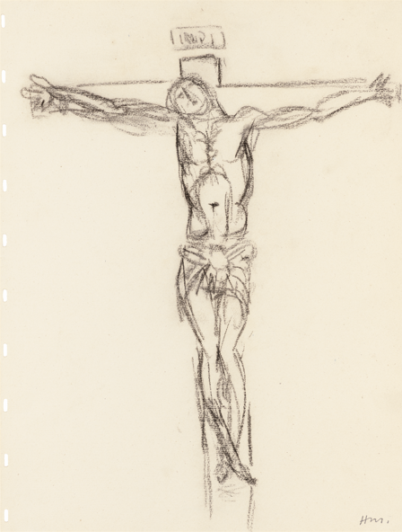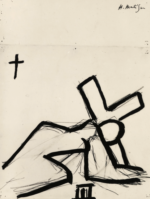 Étude pour la 12e station, 1949, fusain sur papier vergé de cahier à dessins filigrané Arches, 44,4 × 33,2 cm. Musée Matisse Nice, don des héritiers de l’artiste, 1960, 63.3.12. Photo © François Fernandez.