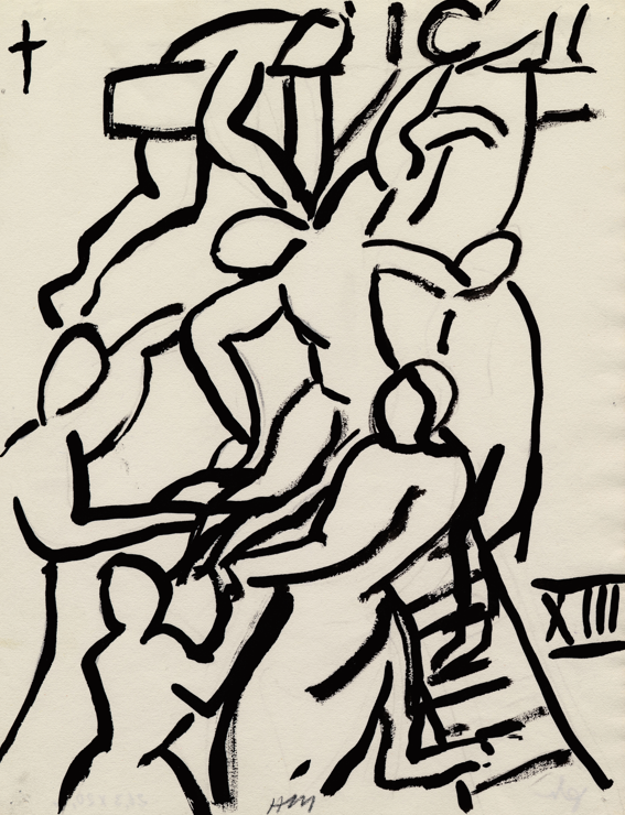 Étude pour la 7e station, 1948, crayon, pinceau et encre sur papier, 26,5 × 20,2 cm. Collection particulière. Photo : DR.