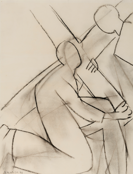 Étude pour la 5e station, (1949), fusain sur papier vélin, 63 × 48 cm. Chapelle des Dominicaines, Vence. Photo : DR.