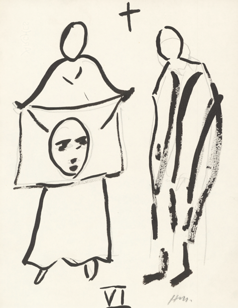 Étude pour la 6e station, 1948, crayon, pinceau et encre sur papier, 26,3 × 20,3 cm. Collection particulière. Photo : DR.